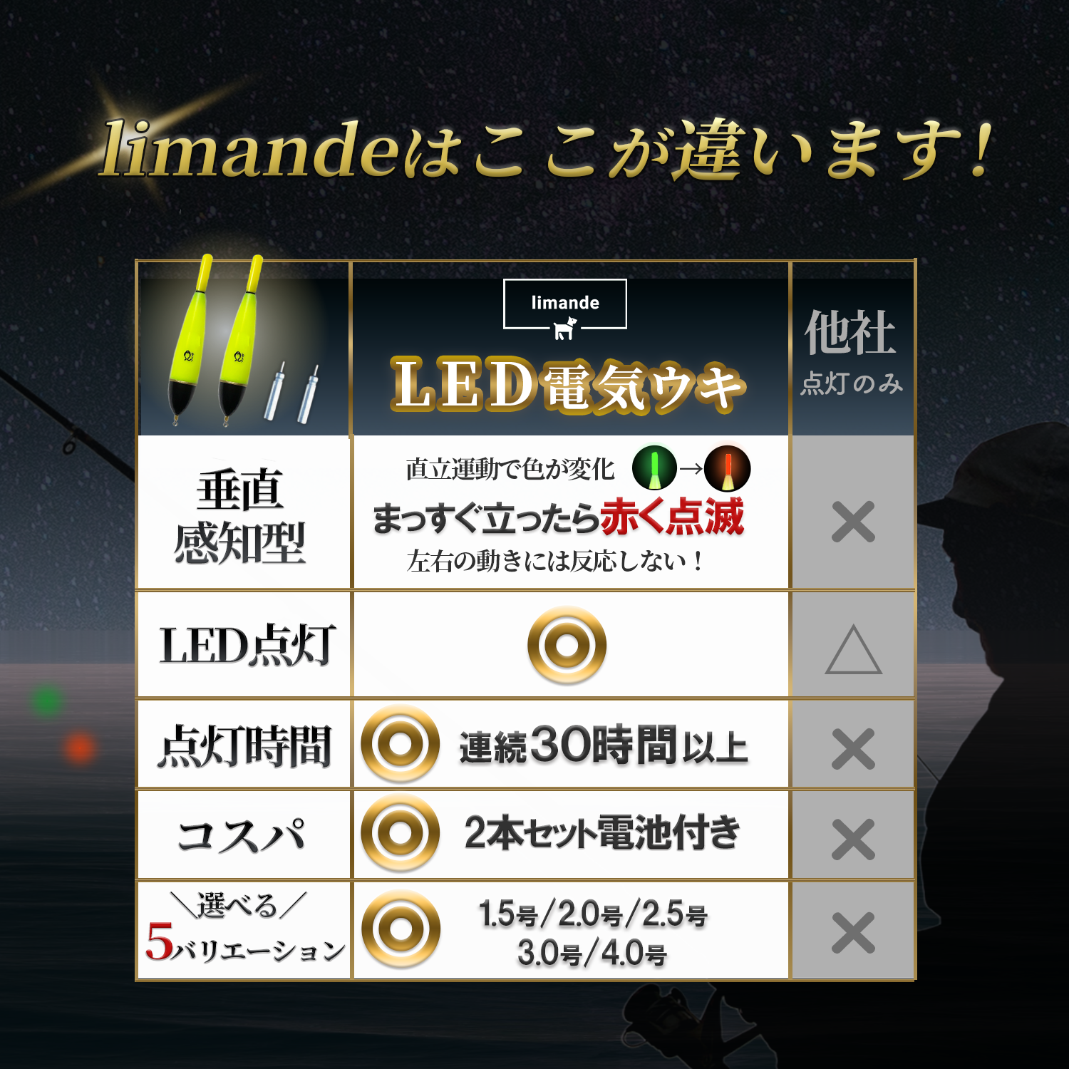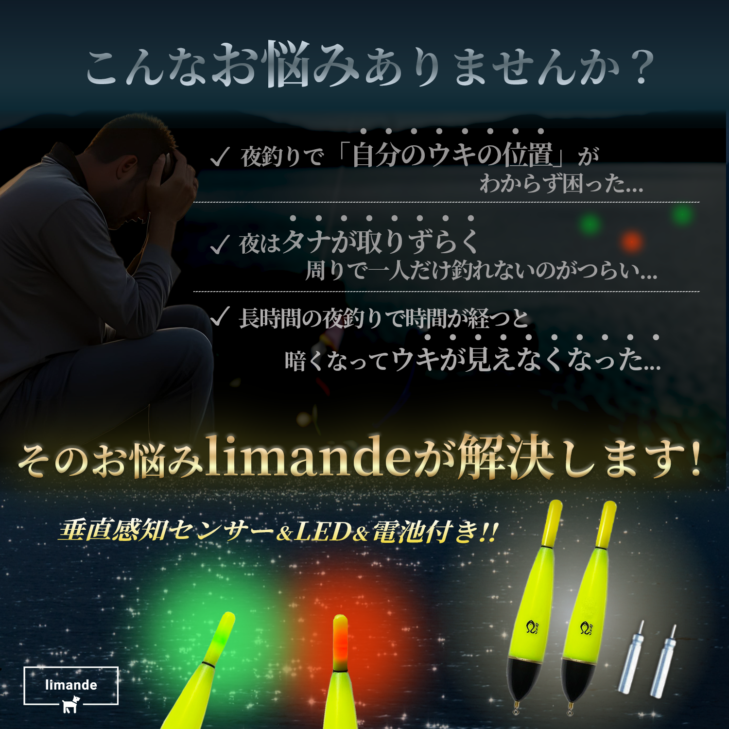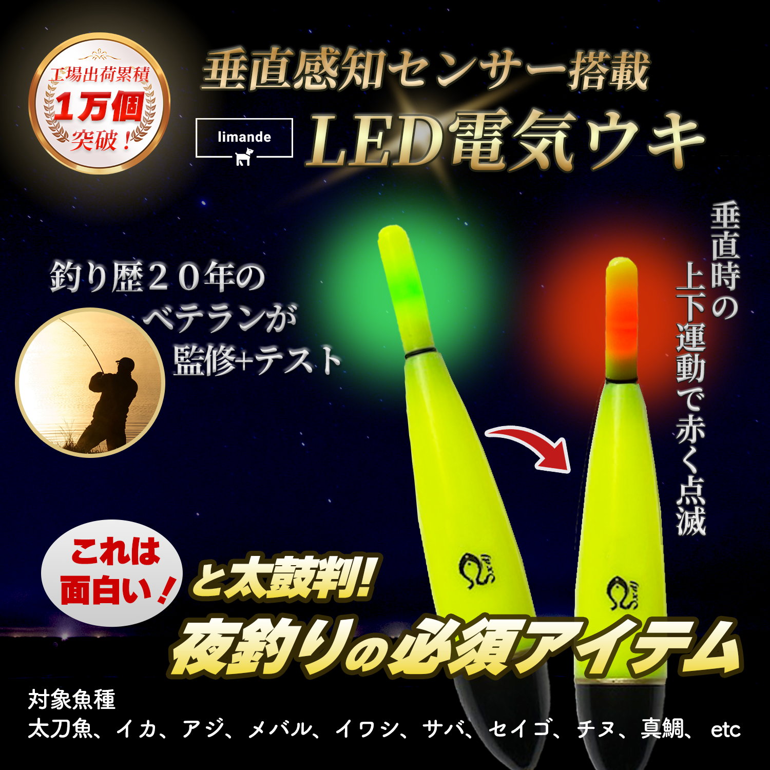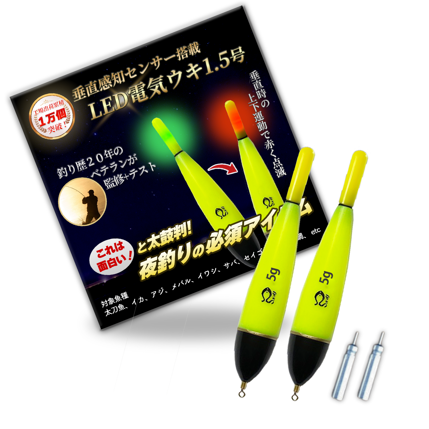 🐟夜釣りに必須の電気ウキ、それに「垂直感知式センサー搭載型LED電気ウキ」が新登場。上下の動きに反応し「グリーン点灯」から「レッド点滅」へ変化。