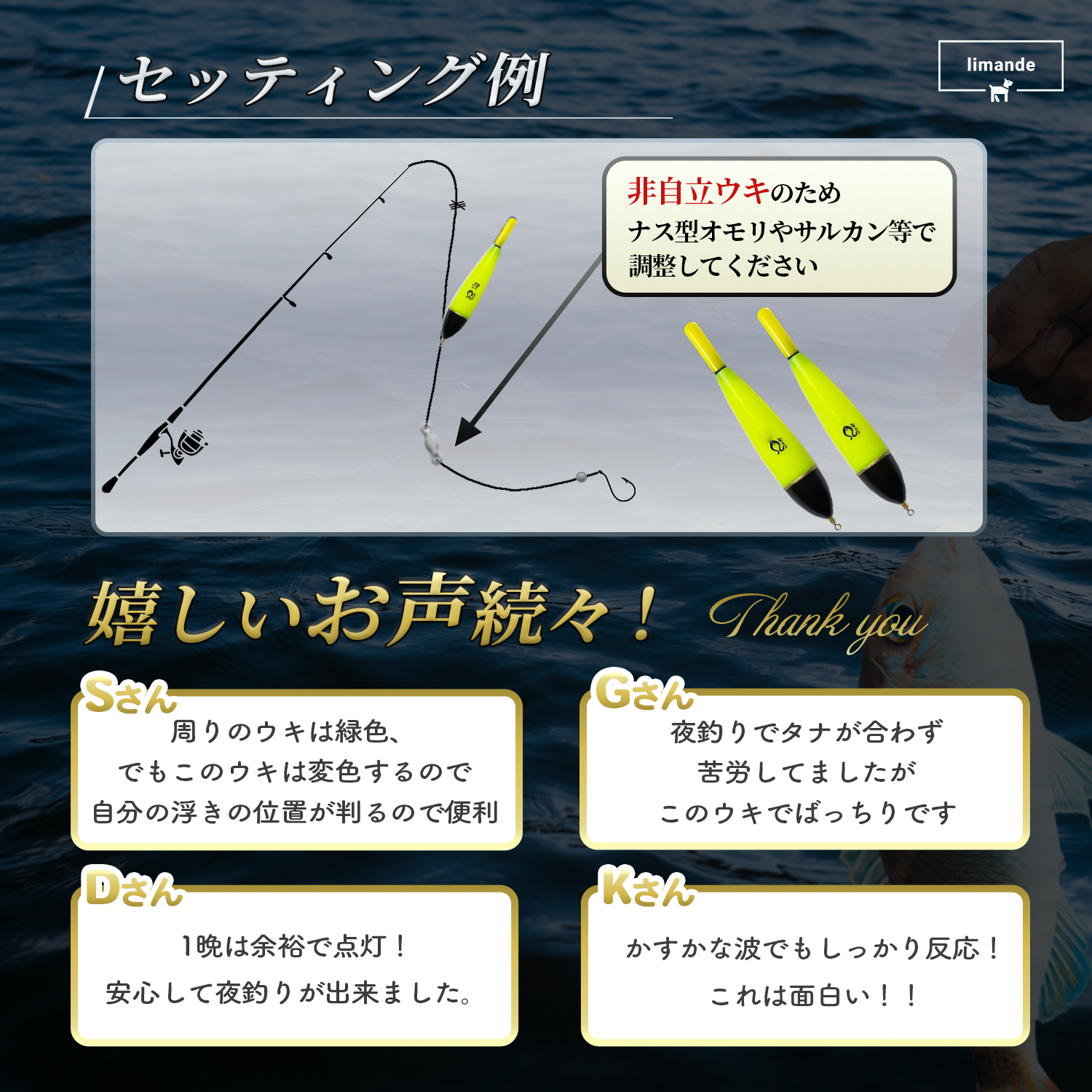 🐟主な対象魚:タチウオ、イカ、アジ、メバル、イワシ、サバ、セイゴ、チヌ、マダイ、 etc
