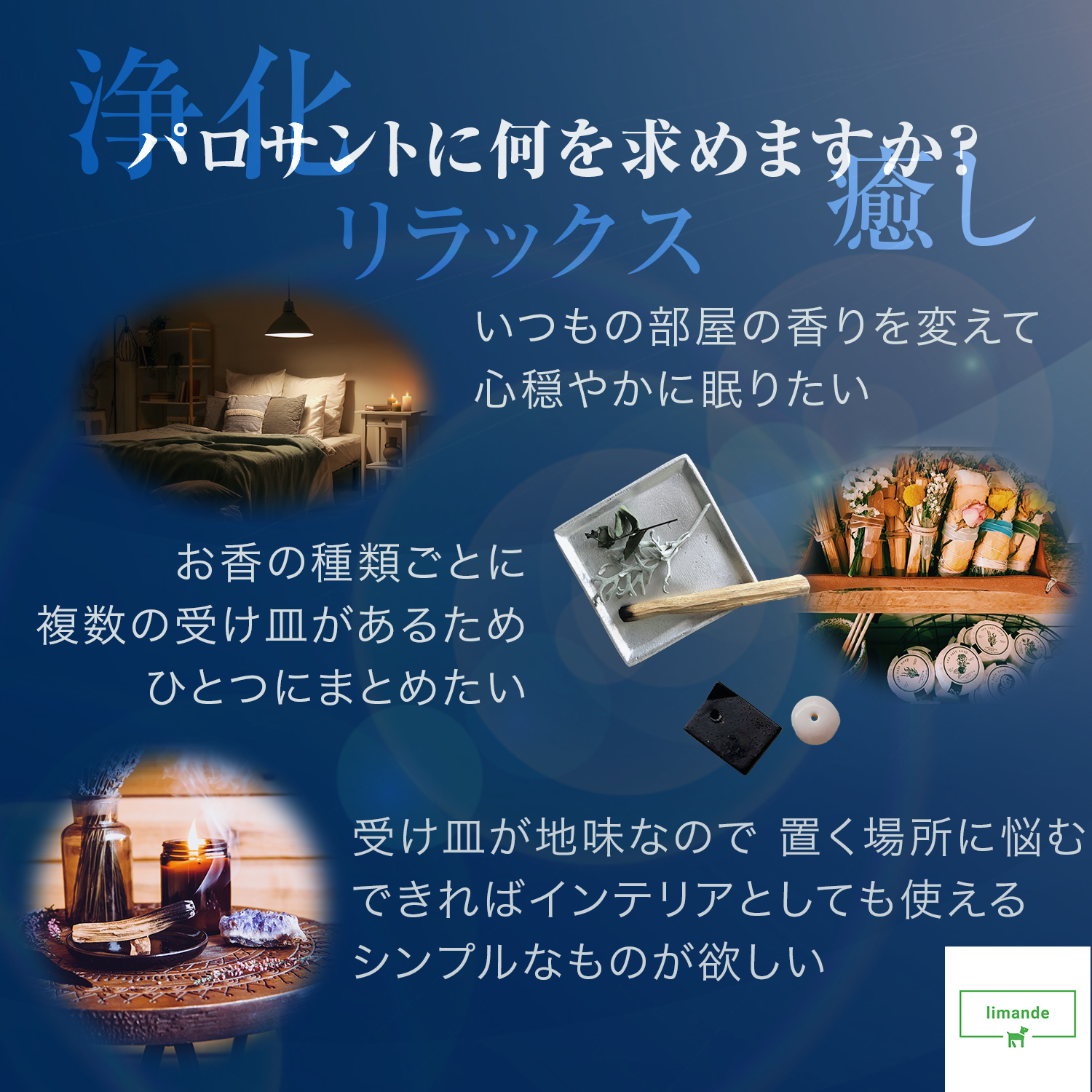 ✨聖なる木「パロサント(palo santo)」の濃厚な香りが、自然素材のアロマとして空気を浄化し、心身をリラックスさせる効果を持ち、癒しの空間を提供します。
