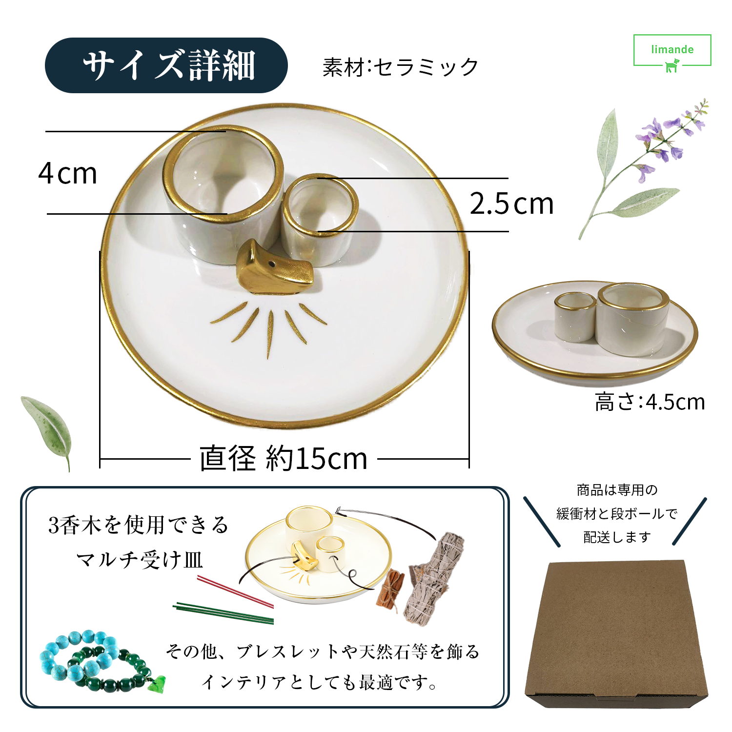 ✨直径約15cmの安定感のあるセラミック製のホルダーは、灰が飛び散りにくい設計で、安心してお使いいただけます。お手入れも簡単で、灰が落ちても水で洗い流すことができ、いつでも清潔な状態を保つことができます。