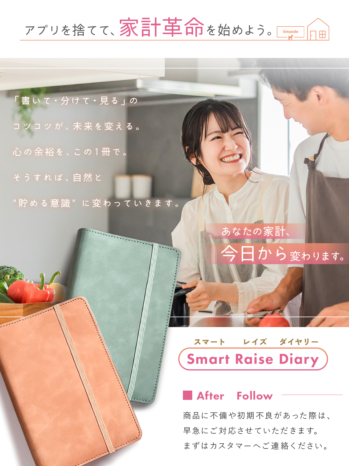 【✨未来を変える1冊✨】「お金を大切にする実感」をその手に 手書きの跡は、アプリよりも深く「お金を大切にする心」を育みます。無駄遣いの波を静め、暮らしを整える。スマート レイズ ダイヤリーは、あなたの「貯まる暮らし」に寄り添う最良の1冊に。今日から理想の未来をこのSmart Raise Diaryとともに綴りませんか。